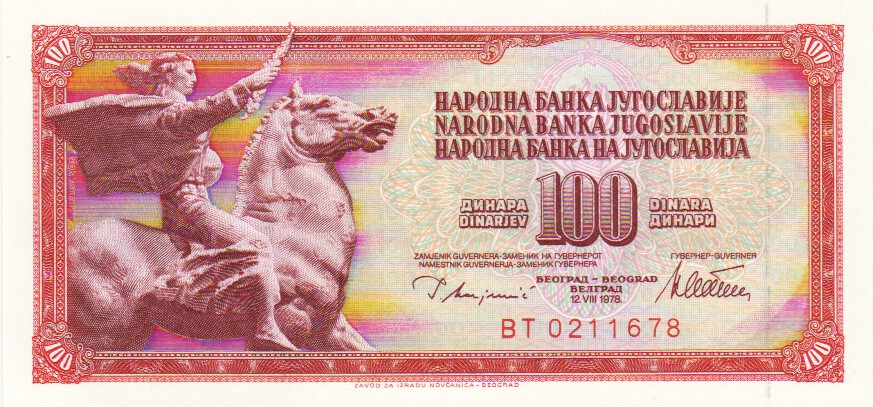Yugoslavia 100 Dinara, 12. 8.197890a100 Dinara12. 8.1978UNC£0.80