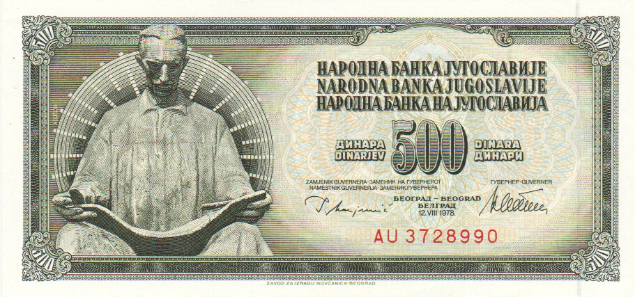 Yugoslavia 500 Dinara, 12. 8.197891a500 Dinara12. 8.1978UNC£1.20