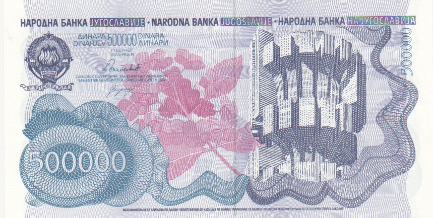 Yugoslavia 500,000 Dinara, 1994143a500,000 Dinara1994UNC£1.50