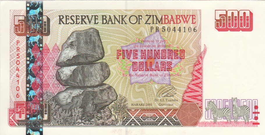 Zimbabwe 500 Dollars, 200110500 Dollars2001VF£1.50