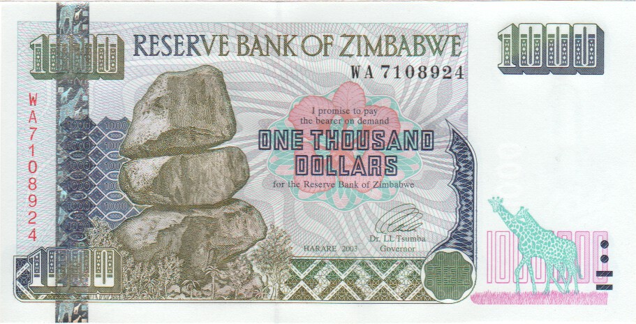 Zimbabwe 1000 Dollars, 200312a1000 Dollars2003UNC£2.50