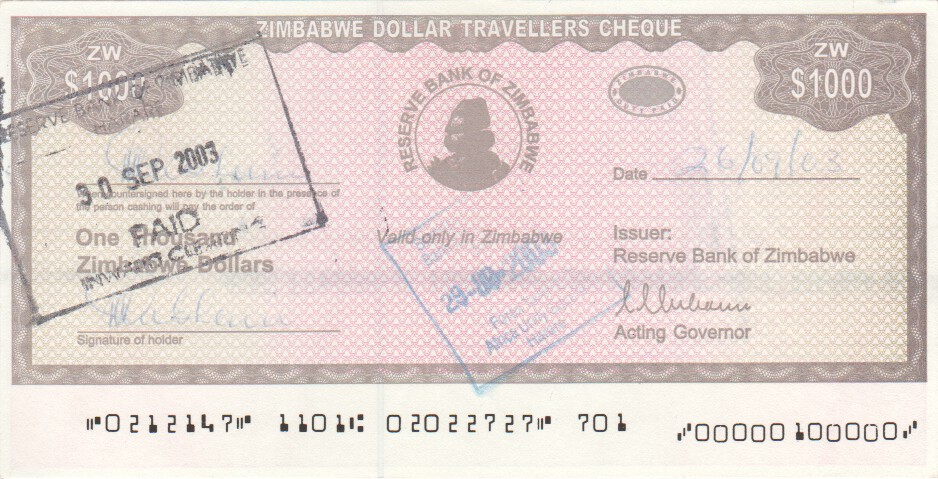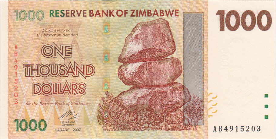 Zimbabwe 1000 Dollars, (2003)15tc1000 Dollars(2003)aUNC£2.00