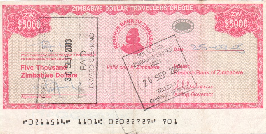 Zimbabwe 5000 Dollars, (2003)16tc5000 Dollars(2003)VF/VF+£1.50