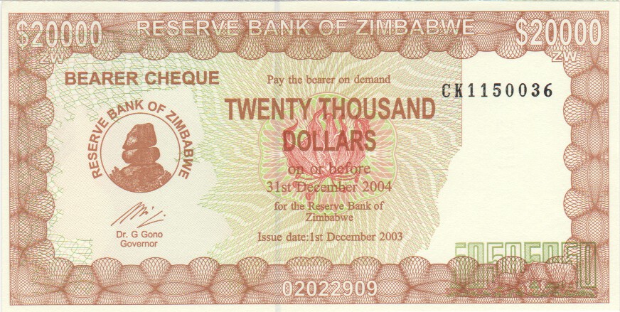 Zimbabwe 20,000 Dollars,  1.12.200323e20,000 Dollars 1.12.2003VF£2.00
