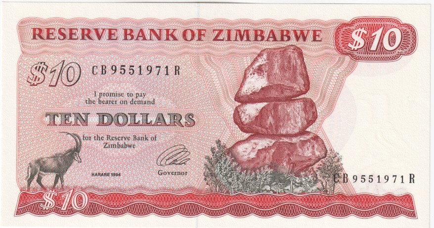 Zimbabwe 10 Dollars, 19943e10 Dollars1994UNC£25.00