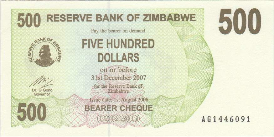 Zimbabwe 500 Dollars, 200110500 Dollars2001EF£3.50