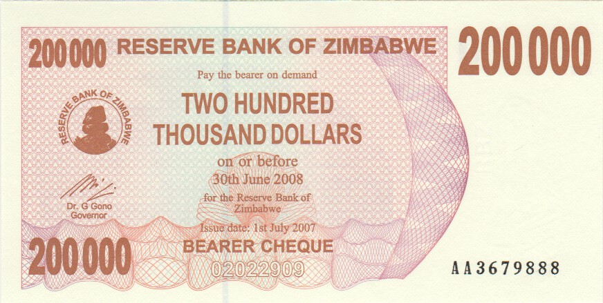 Zimbabwe 200,000 Dollars,  1. 7.200749200,000 Dollars 1. 7.2007UNC£1.50