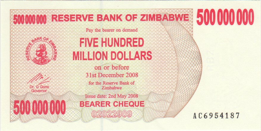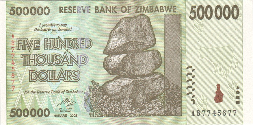 Zimbabwe 500,000 Dollars, 200876500,000 Dollars2008UNC£1.50