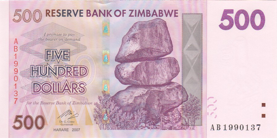 Zimbabwe 500 Dollars, 2007 (2008)70500 Dollars2007 (2008)UNC£4.00