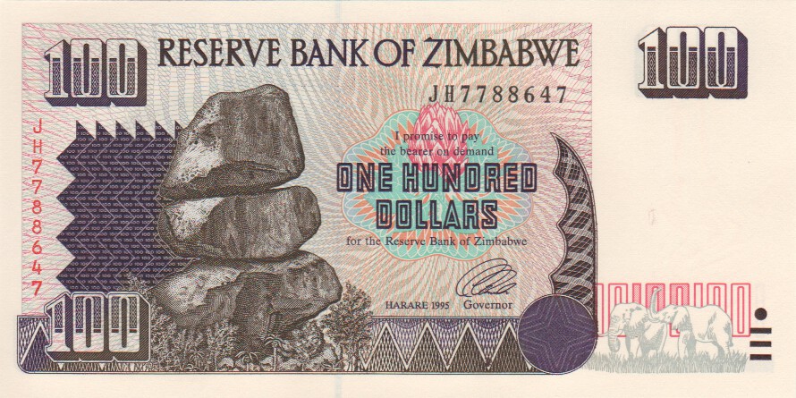 Zimbabwe 100 Dollars, 19959100 Dollars1995UNC£3.00