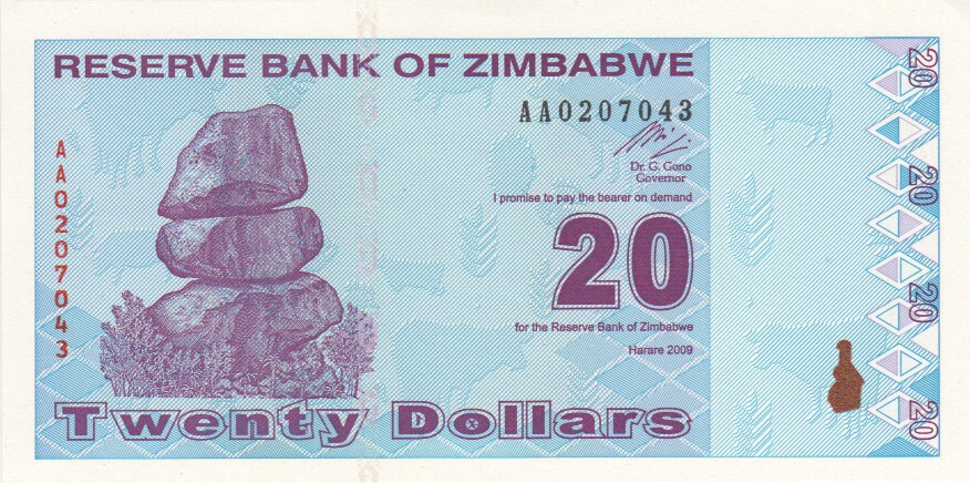 Zimbabwe 20 Dollars, 2007 (2008)6820 Dollars2007 (2008)UNC£3.50