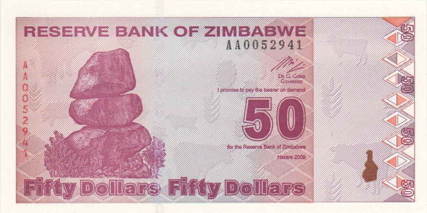 Zimbabwe 50 Dollars, 20099650 Dollars2009UNC£1.50