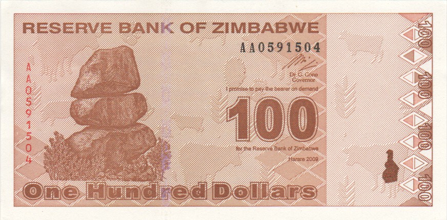 Zimbabwe 100 Dollars, 200997100 Dollars2009UNC£2.00